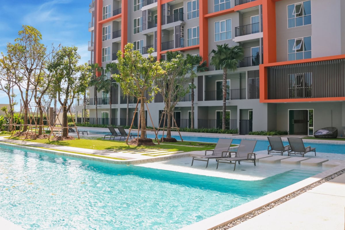 对华欣投资公寓 “ My Style Huahin102 :中文的意思是我的风格华欣102” 感兴趣的任何人,都可以入住华欣新公寓。这家公寓值得考虑投资,因为它的地理位置十分便利:附近有百货公司,教育机构和医院等,距主要道路仅800米。该公寓还配有齐全的设施,包括一个停车场,带喷射水疗的公共游泳池和健身套房。